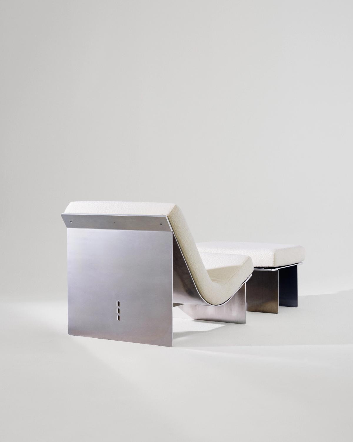 Bent aluminium sheets come together to create the futuristic-looking lounge chair Kollen. The silvery-white metal’s clean and sharp lines, combined with the soft seating in wool bouclé from Kvadrat, make for a simple and modern piece of furniture, designed to survive for generations. The name Kollen is inspired by the chair’s resemblance to a ski jumping hill – Kollen is short for Holmenkollen, one of Norway’s most visited landmarks.