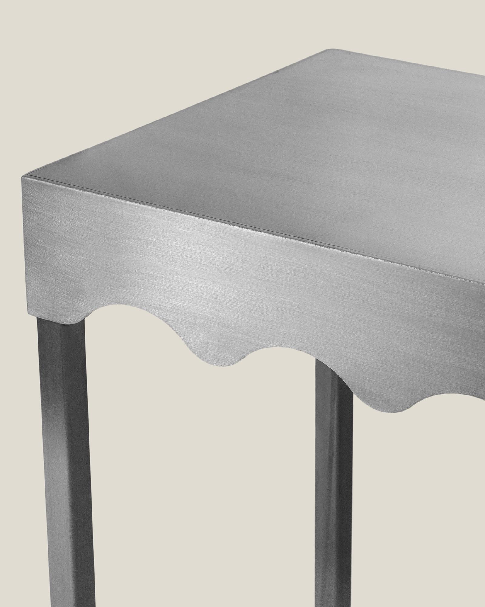 This raw and refined table is like an important side note of a greater thought: it seamlessly complements any setting. It features a smooth tabletop, with the material of your choosing, and rests upon a rectangular steel frame – a simplistic piece with clean lines and essential functionality.