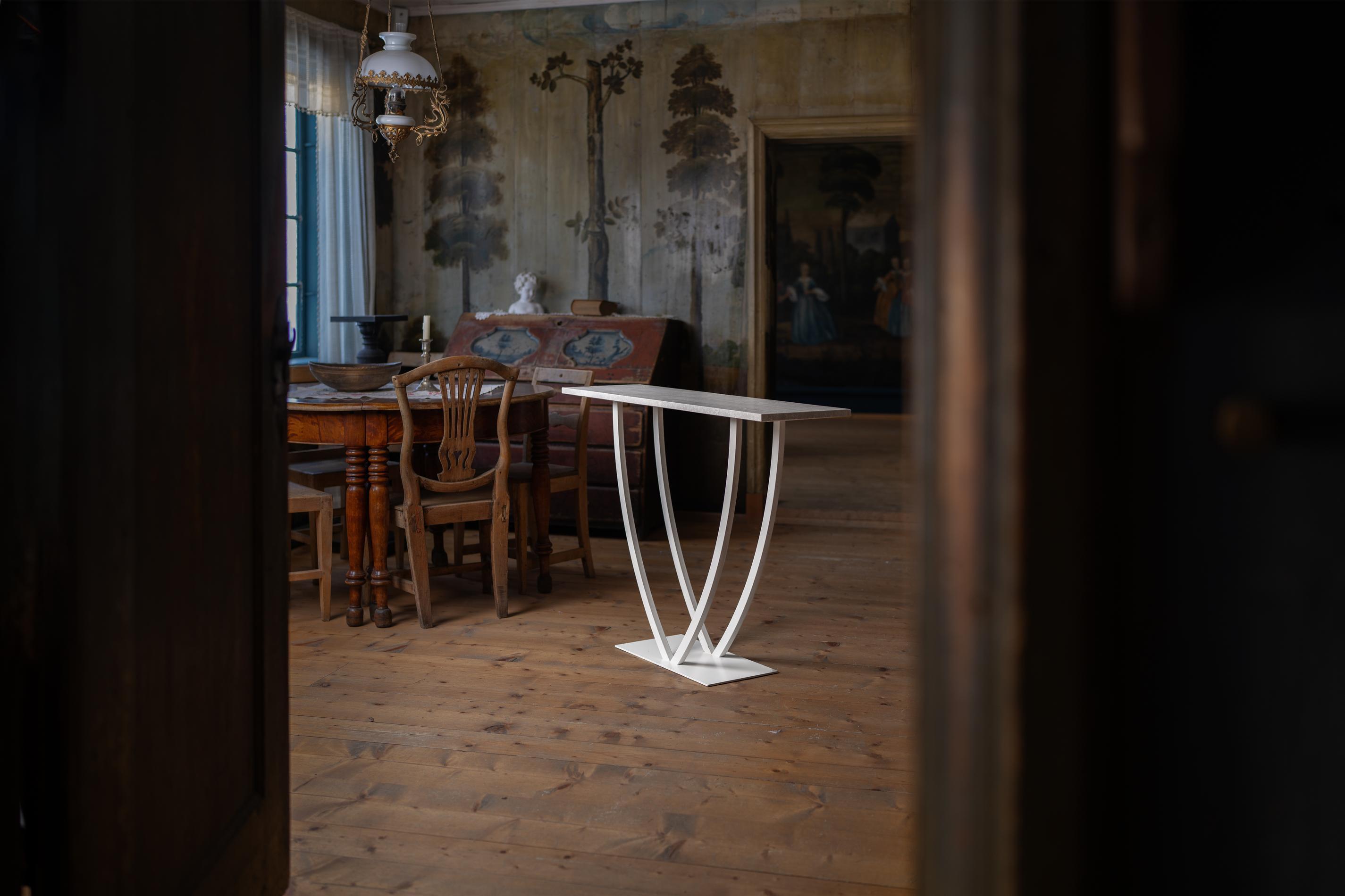 This console table is serving as both a centerpiece and a nod to the intricate tracery found in Gothic architecture. With its soaring arch and horisontal line to balance it out, it stands as a refined expression of harmony and stability that will last for generations